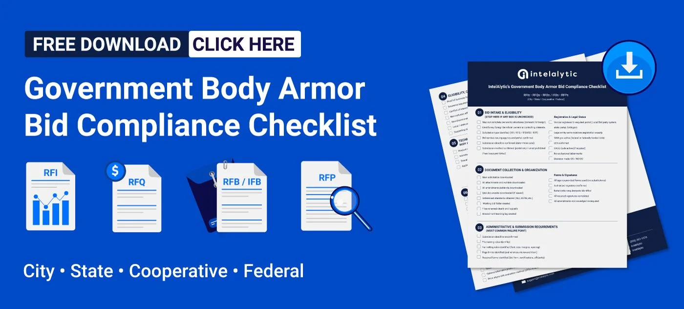 This guide exists to address that reality and is accompanied by our FREE Government Body Armor Bid Compliance Checklist, a practical tool designed to help you verify every step before submission.